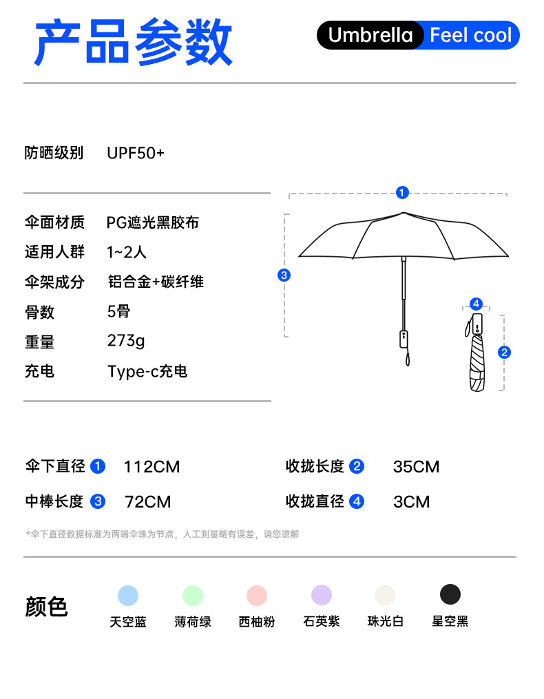 【布料】:190T黑胶防紫外线布