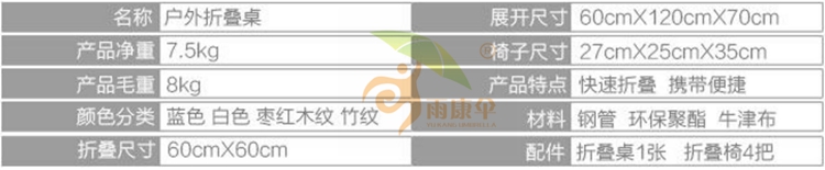 【配件】:折叠桌1张、折叠椅4个