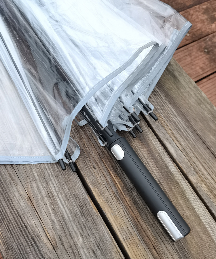 【骨架】:27寸x8kx14厘自动全纤维防雨防雷防滑透明伞