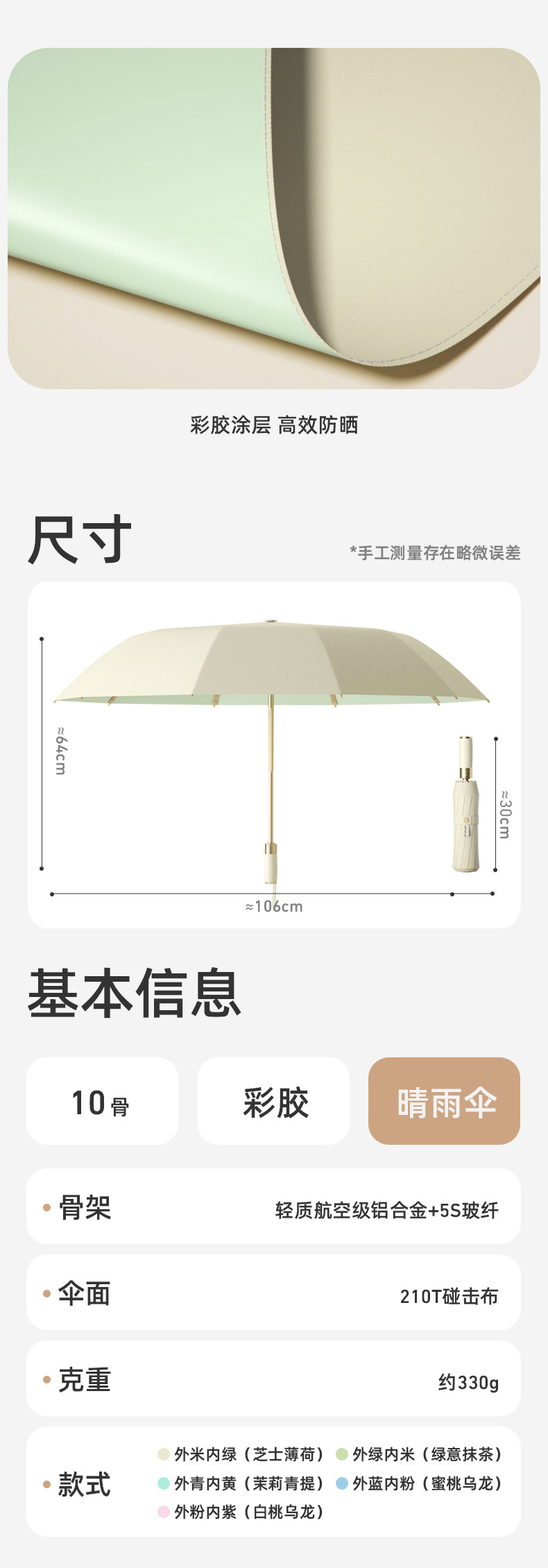 【布料】:210T彩胶布防紫外线