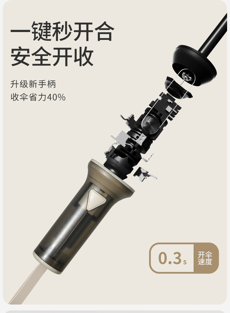 【伞头】:塑胶喇叭形自开收手柄