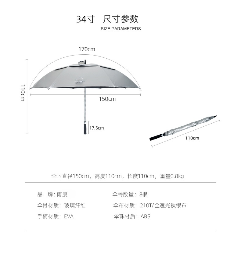【布料】:210T钛银超防晒