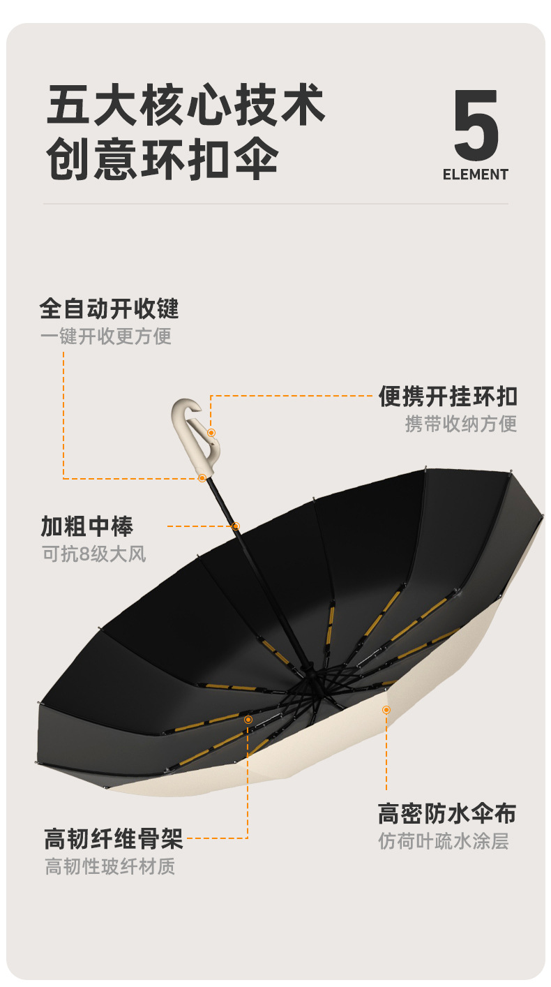 > 12骨环扣全自动开收伞